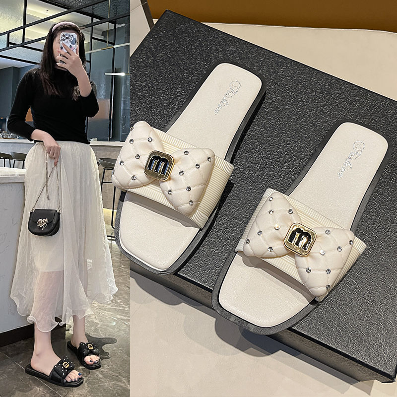 winter Bow Linen Slippers for Women