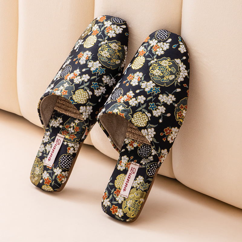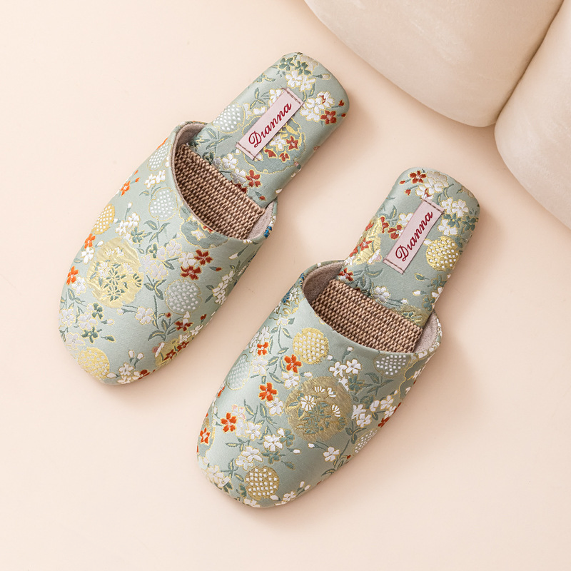 winter Bow Linen Slippers for Women