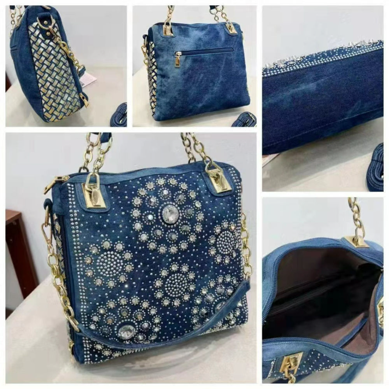 Retro Pu Denim Hobo Bag BLU